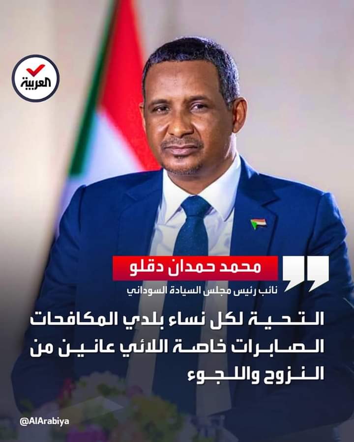 غرد النائب الأول لرئيس مجلس السيادة مهنئا المرأة باليوم العالمي والذي يصادف الثامن من مارس وجاء في تغريدته