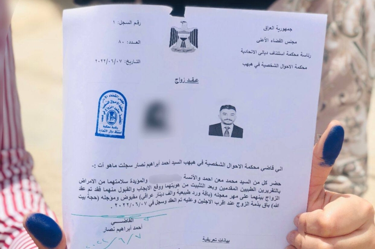 وقال العريس محمد معن العزاوي، لوكالة سند في شبكة الجزيرة، إنه اتفق مع زوجته وأهلها على أن يكون مقدم المهر والمدون في عقد المحكمة باقة ورد وألف دينار أي ما يعادل (75 سنتا) في حين سجل مؤخر الزواج حجة إلى بيت الله بمكة المكرمة.
