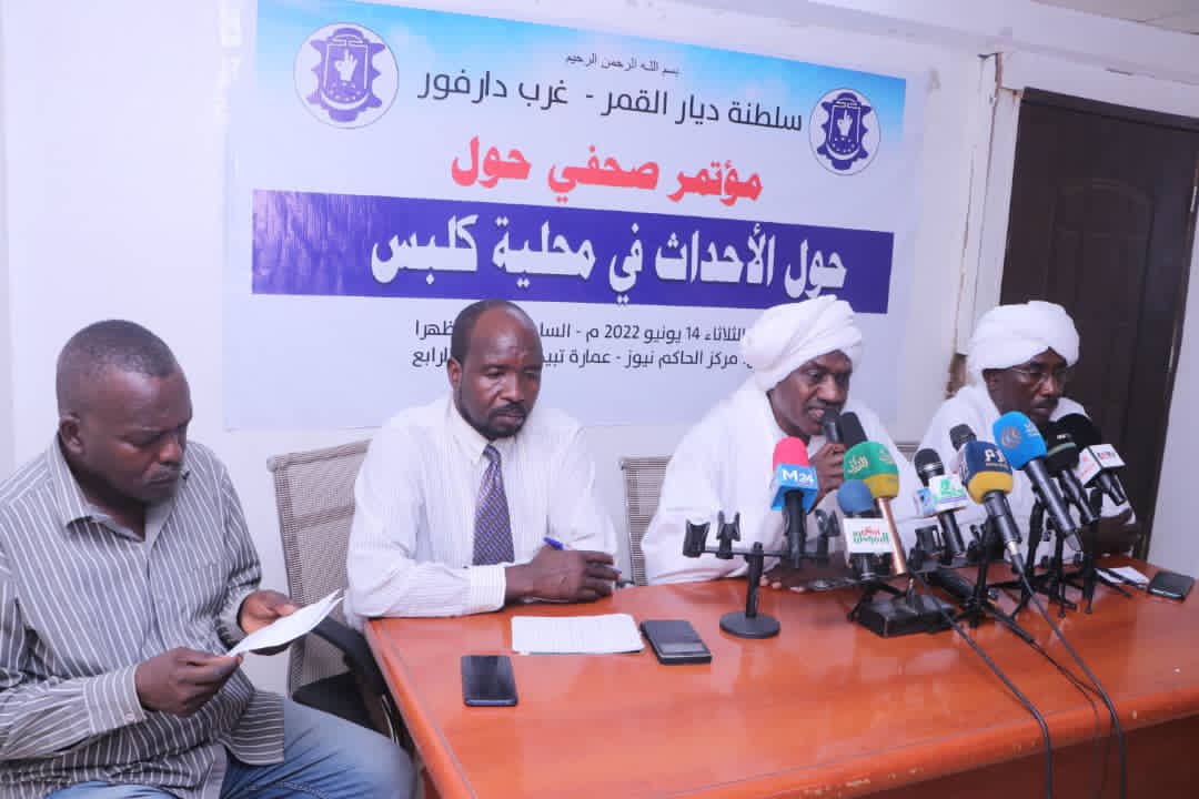 واوضح القيادي هاشم عثمان ، سلطان القمر في مؤتمر صحفي حول أحداث محلية ” كلبس ” بمركز الحاكم نيوز اليوم الثلاثاء، ان بداية المشكلة خلاف حول مزرعة نجم عنه ازهاق ارواح وتدمير قرى ونهب الممتلكات