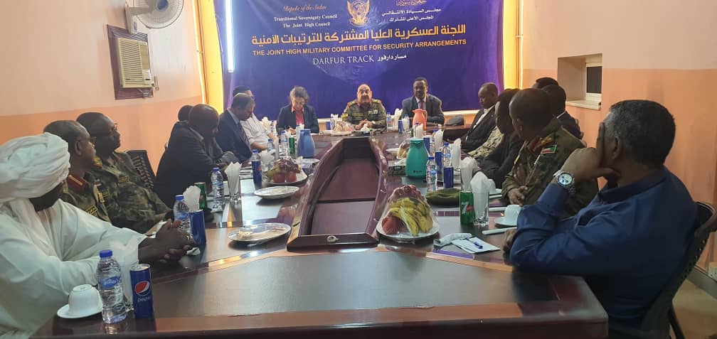 عقدت اللجنة العسكرية العليا المشتركه للترتيبات الامنيه مسار دارفور اليوم بمقرها بالخرطوم اجتماعا موسعا برئاسة اللواء ركن علاء الدين عثمان ميرغني رئيس اللجنه والفريق الدكتور سليمان صندل حقار الرئيس المناوب للجنة وبحضور عضوية اللجنة