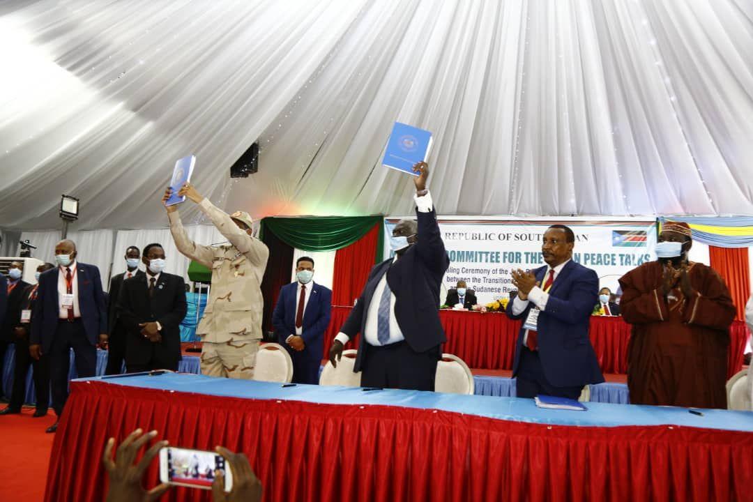 وقعت الحكومة ،الانتقالية والجبهة الثورية السودانية أمس “الاثنين” على اتفاق السلام بالأحرف الأولى بحضور رئيسي مجلسي السيادة والوزراء ورئيس دولة جنوب السودان.وشمل التوقيع 5 مسارات تفاوضية لدارفور والمنطقتين والوسط والشمال والشرق .