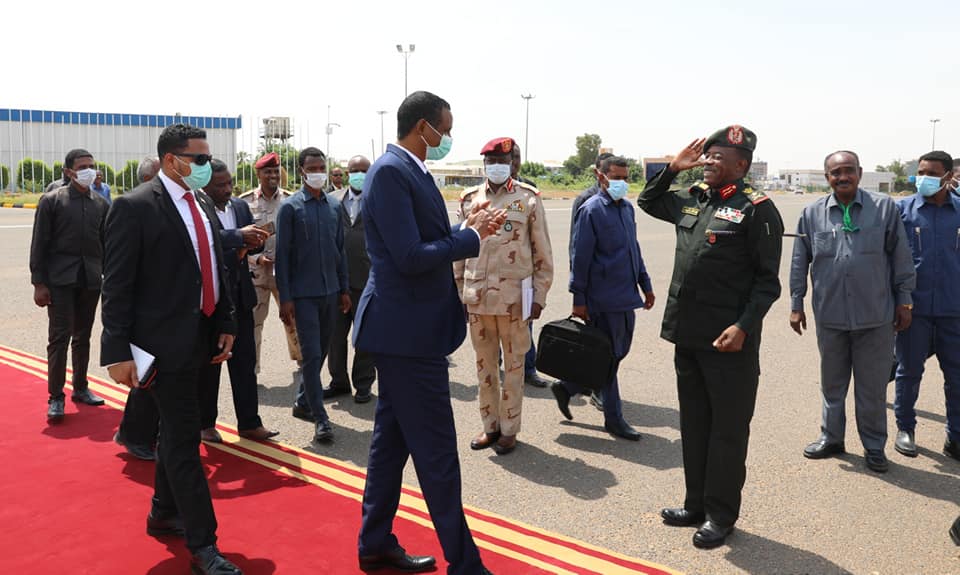 وكان في وداعه لدي مغادرته مطار الخرطوم الدولي الأمين العام لمجلس السيادة الإنتقالي الفريق الركن محمد الغالي علي يوسف.