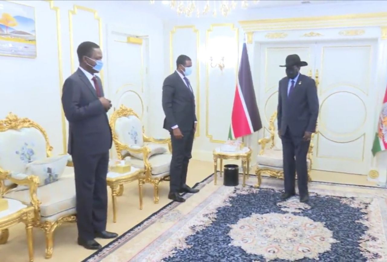واستقبل الرئيس سلفاكير بمكتبه بالقصر الرئاسي نائب رئيس مجلس السيادة الفريق اول دقلو بحضور المستشار توت قلواك مستشار الشؤون الأمنية لرئيس دولة جنوب السودان وعضو مجلس السيادة الانتقالي الفريق أول ركن شمس الدين الكباشي.