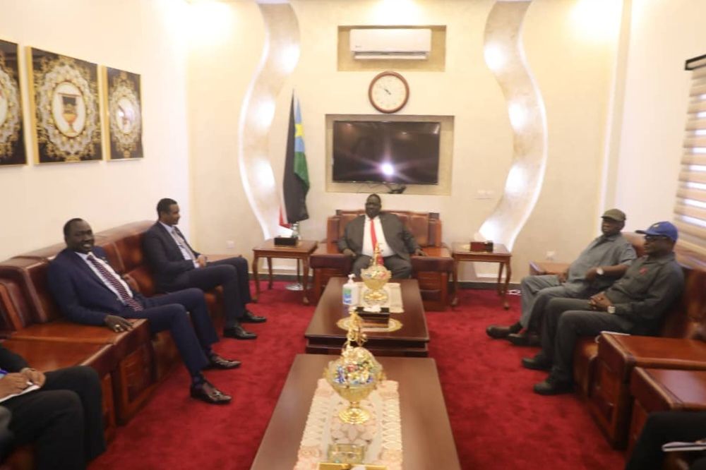 إلتقي النائب الأول لرئيس مجلس السيادة الإنتقالي الفريق أول محمد حمدان دقلو رئيس الوفد الحكومي لمفاوضات السلام اليوم بجوبا رئيس الحركة الشعبية شمال عبد العزيز آدم الحلو ، بحضور المستشار توت قلواك رئيس لجنة الوساطة الجنوبية .