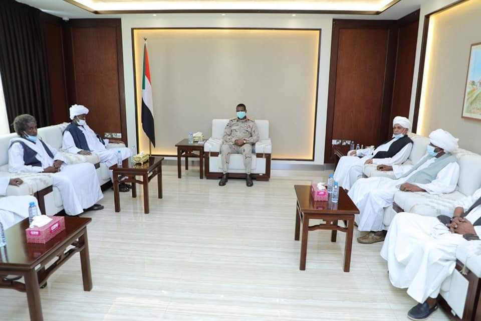 التقى النائب الأول لرئيس مجلس السيادة الانتقالي الفريق أول محمد حمدان دقلو بمكتبه اليوم وفد المجلس الأعلى لنظارات قبائل البجا والعموديات المستقلة برئاسة الناظر محمد الأمين ترك لمناقشة الأوضاع في شرق السودان.