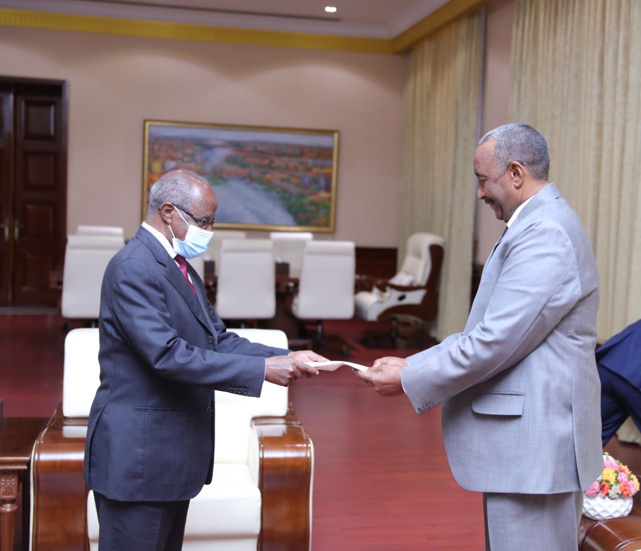 تسلم رئيس مجلس السيادة الانتقالي الفريق أول ركن عبدالفتاح البرهان رسالة خطية من شقيقه الرئيس الأريتري سياسي أفورقي تتعلق بالعلاقات الثنائية وسبل دعمها وتطويرها.