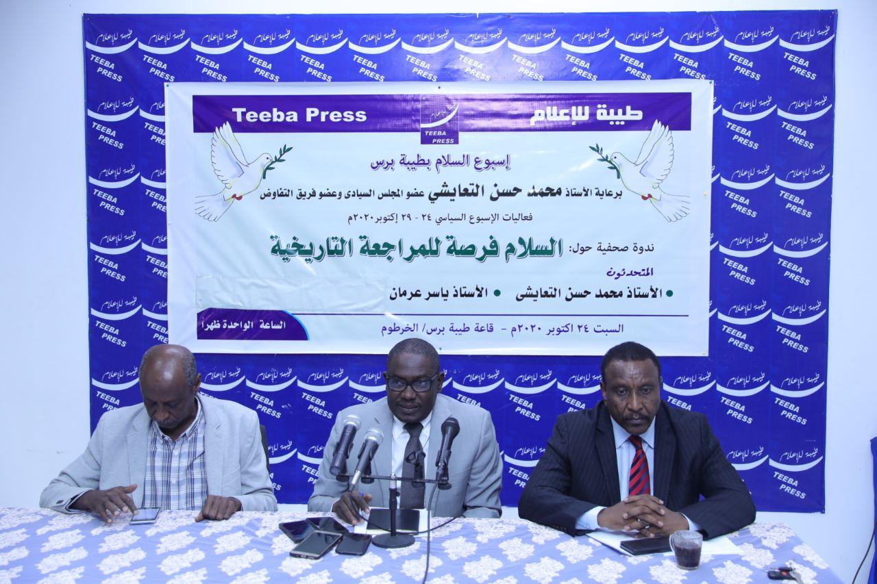 وقال التعايشي لدى مخاطبته الندوة الصحفية حول السلام فرصة للمراجعة التاريخية بمركز طيبة برس مساء اليوم “إن أي إتفاقية سلام لم تناقش قضايا التسوية التاريخية في السودان تعتبر إتفاقية خاينة لمبادئ ثورة ديسمبر” .