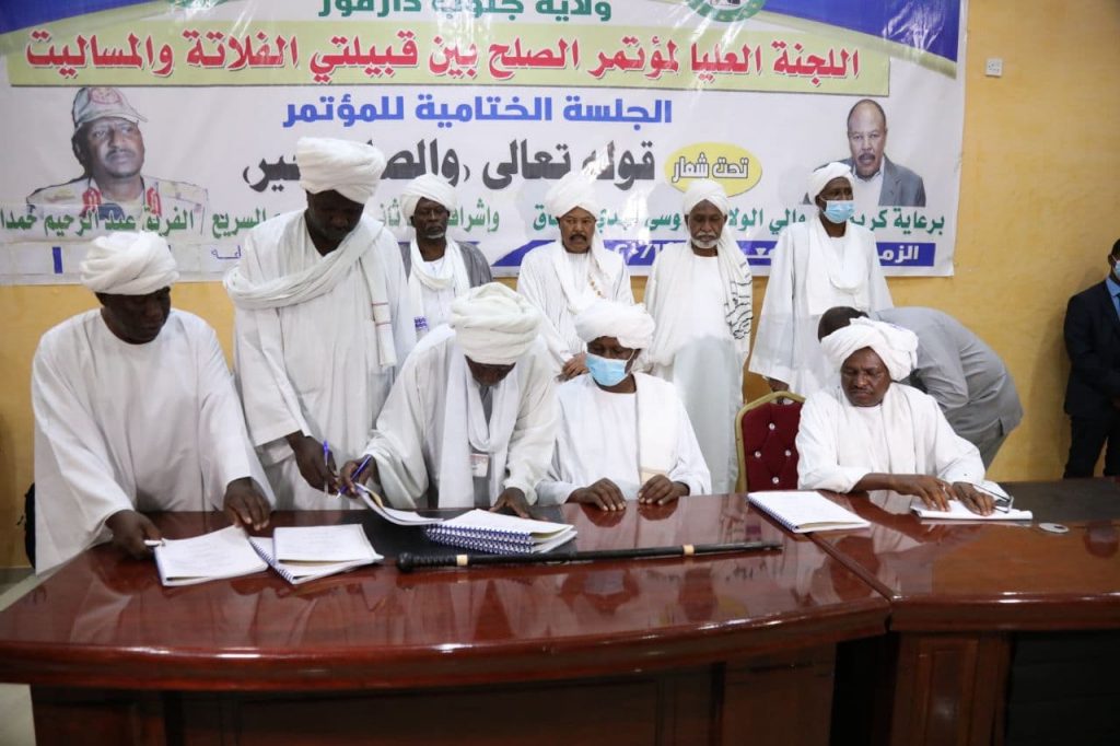 وقعت قبيلتي الفلاتة والمساليت بولاية جنوب دارفور امس إتفاق للصلح النهائي وطوت بموجبها صفحة الخلاف بين الطرفين، الذي وقع فى يوليو الماضي في منطقة ابدوس ومن ثم الدكة، ابيض ومحلية قريضة، حيث راح ضحيتها عدد من الأفراد وخسائر مادية وفي الممتلكات .