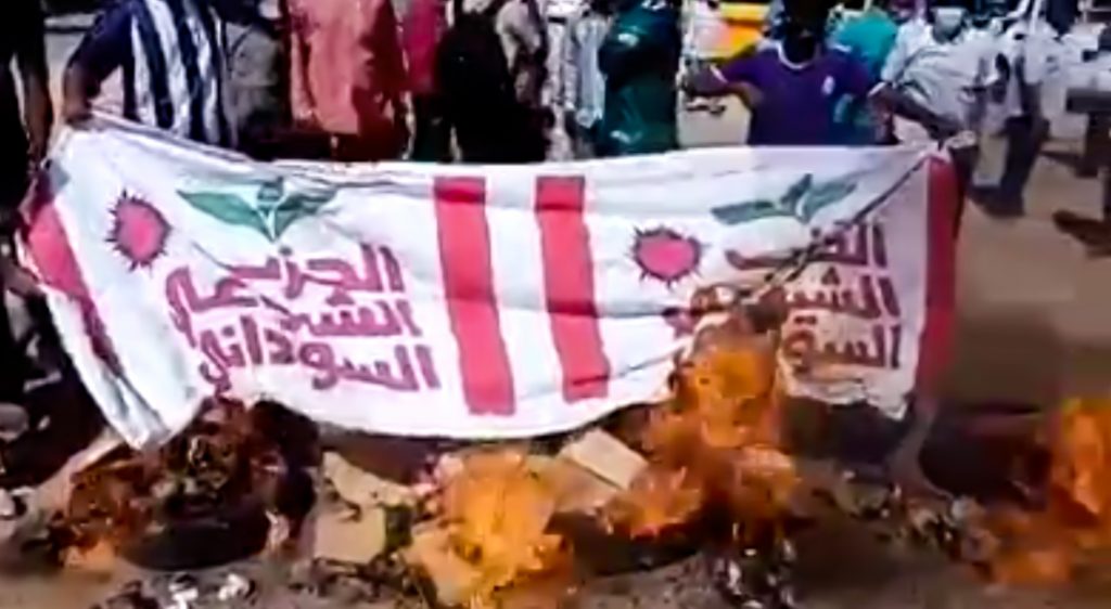 لجان المقاومة بالخرطوم تحرق اعلام الحزب الشيوعي