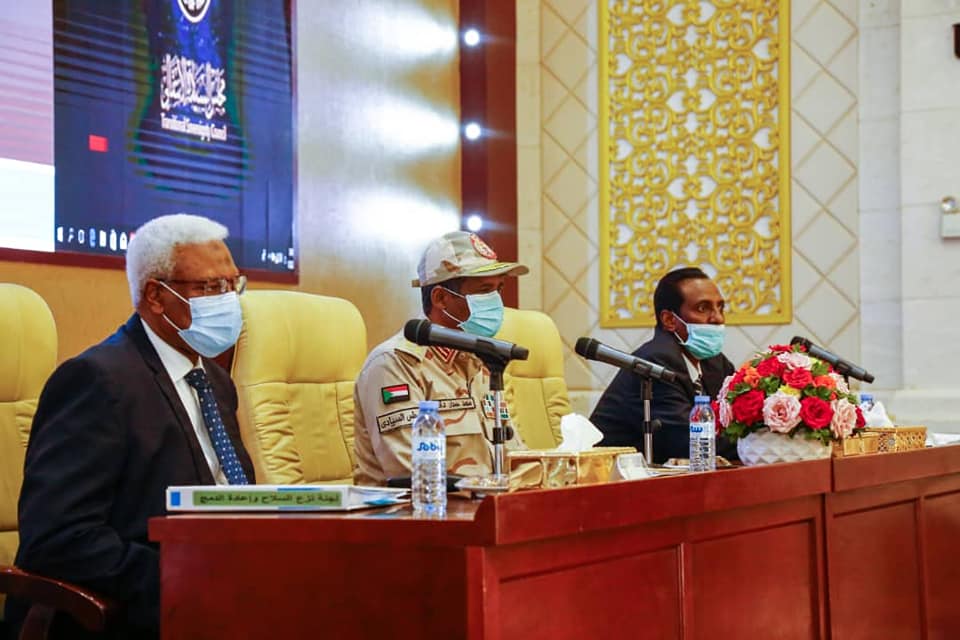 رأس الفريق أول محمد حمدان دقلو النائب الأول لرئيس مجلس السيادة الانتقالي، بالقصر الجمهوري اليوم، إجتماع اللجنة العليا لجمع السلاح والعربات غير المقننة، بحضور عدد من السادة الوزراء وولاة الولايات وقادة الأجهزة الأمنية.