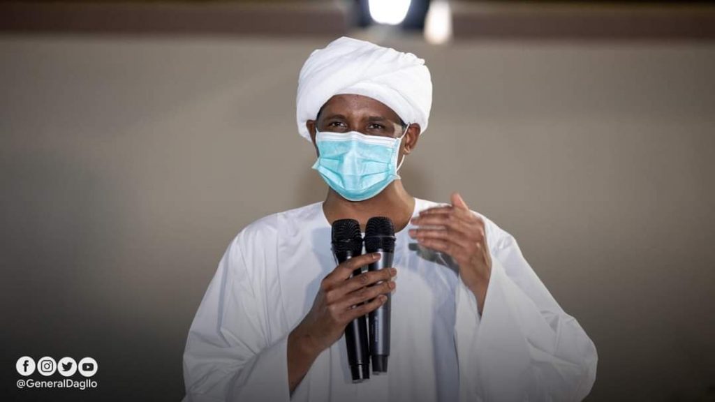 وقال حميدتي للوفد سنعمل خلال الفترة المقبلة على ترتيب زيارات للولايات للوقوف على أوضاع أهلنا والتعرف على قضاياهم ومتابعة مشروعات التنمية والاستقرار.