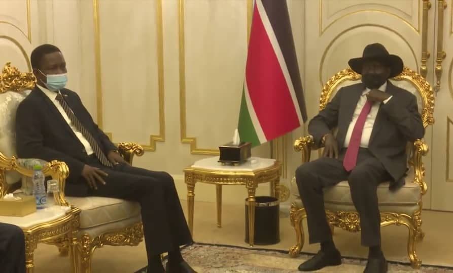 أستقبل رئيس دولة جنوب السودان الفريق أول *سلفاكير ميارديت* بالقصر الرئاسي بجوبا اليوم ، الفريق أول ركن شمس الدين كباشي عضو مجلس السيادة الانتقالي بحضور وزير الخارجية المكلف عمر قمر الدين.والمستشار توت قلواك مستشار الرئيس سلفاكير للشؤون الأمنية.