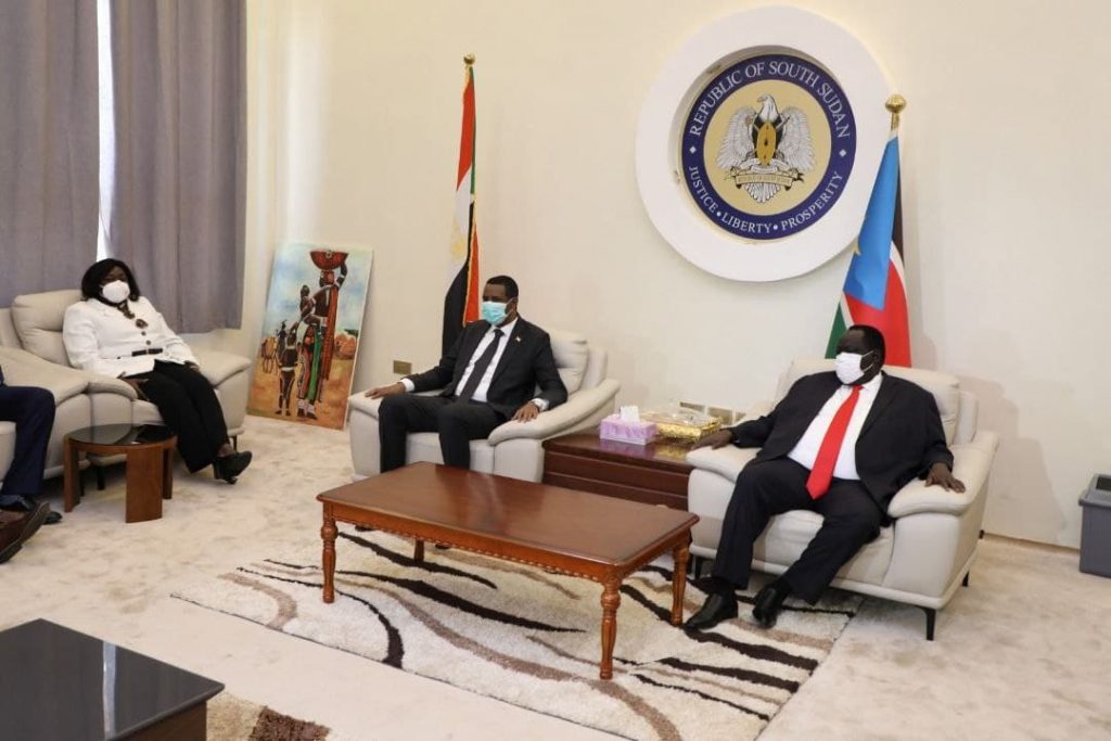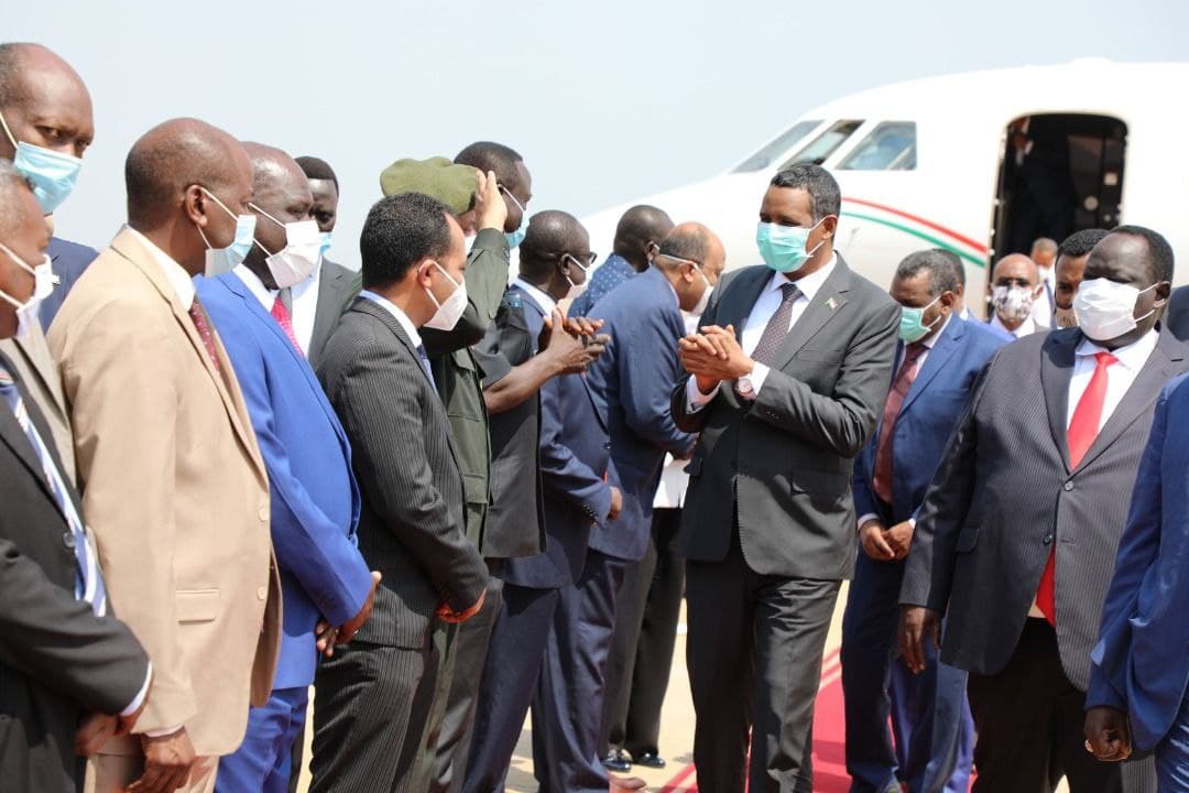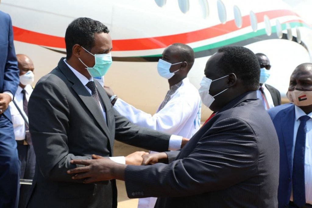 وكان في إستقبال النائب الأول بمطار جوبا الدولي توت قلواك مستشار رئيس دولة جنوب السودان وعدد من المسؤولين في حكومة الجنوب الى جانب أعضاء السفارة السودانية.