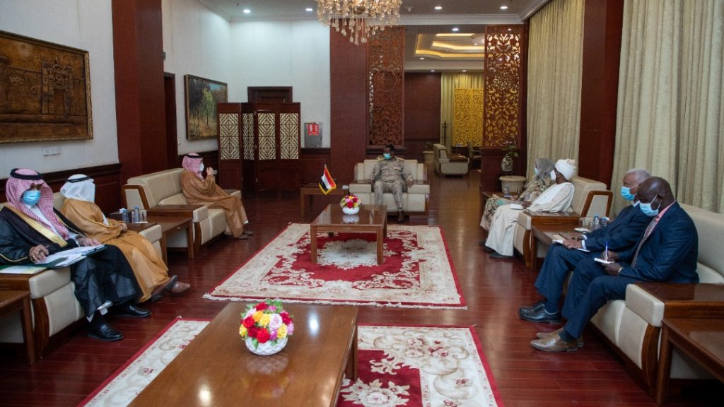 التقى النائب الأول لرئيس مجلس السيادة الإنتقالي الفريق أول محمد حمدان دقلو بالقصر الجمهوري اليوم ، السيد أحمد بن عبد العزيز قطان وزير الدولة لشؤون الدول الافريقية السعودي ، بحضور الوكيل المساعد بوزارة الخارجية السفيرة الهام ابراهيم شانتير وسفير المملكة العربية السعودية بالخرطوم علي بن حسن جعفر.